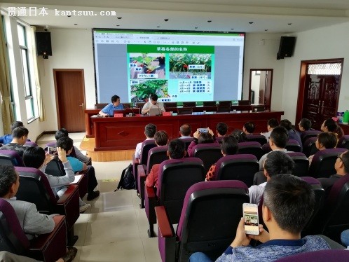 草莓栽培最新实用技术讲座现场 (国际部 摄) 田中一久先生曾任日本三重县科学技术振兴中心副院长、首席研究员,他长期从事草莓栽培、果树种植等方面的研究,曾多次来镇江考察指导。此次讲座是科普宣传周重要活动之一,田中先生在讲座中详细阐述了草莓整个生长周期过程中的关键技术、病虫害防治,介绍了日本草莓新品种新技术。田中先生还被聘请为技术顾问,将定期来白兔开展技术指导。